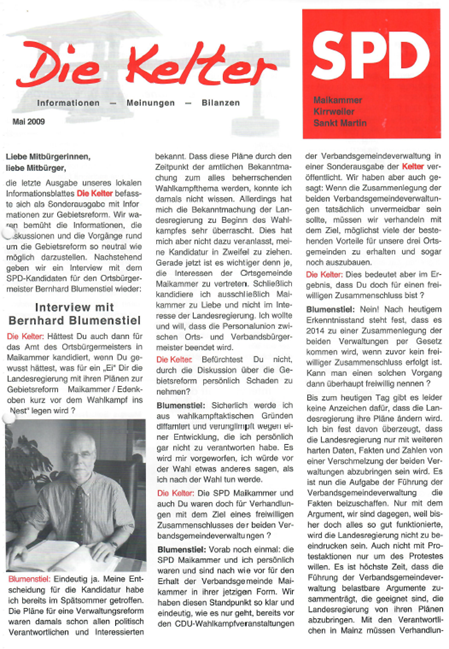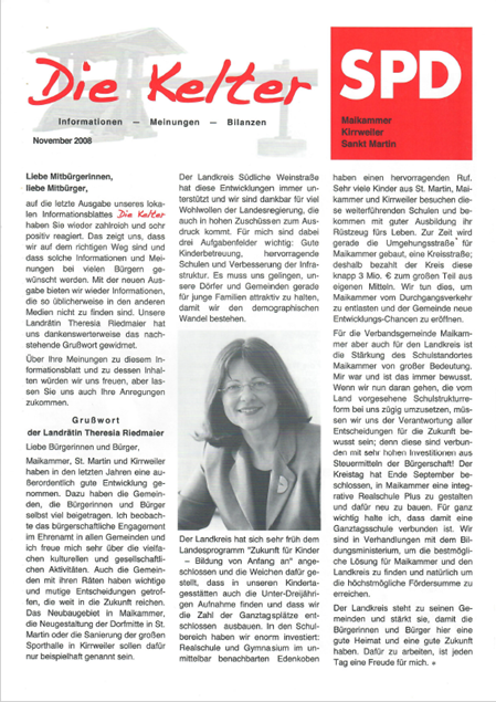 der Verbandsgemeinde Maikammer unsere "Kelter". Wir informieren darin über